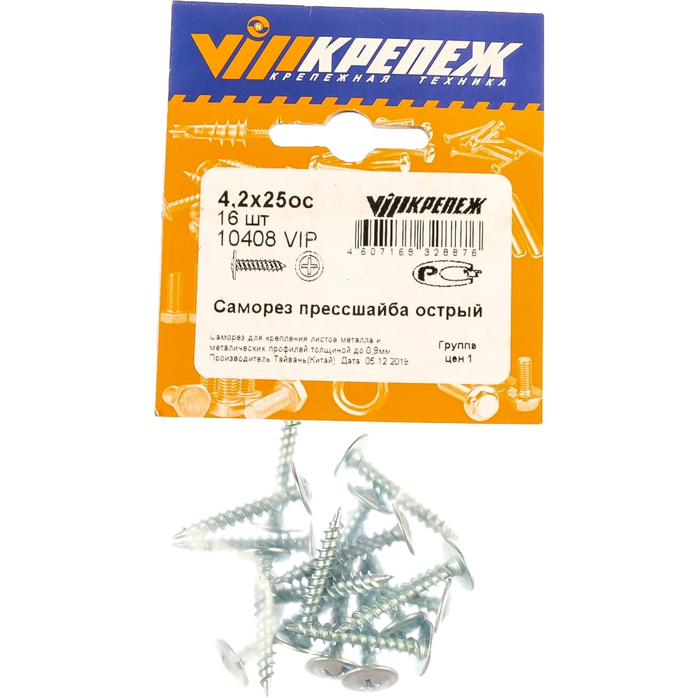 Саморез с прессшайбой VIPКрепеж острый 4,2х25 16 шт 10408 VIP