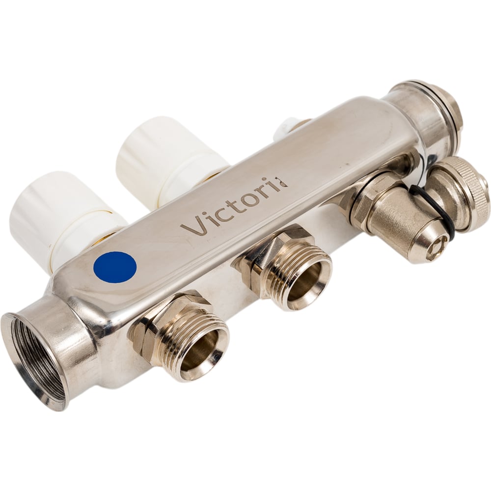 Коллекторная группа из нержавеющей стали Victoria с расх. 1"x3/4ek- 2вых. (кран маевского + сливной кран) 60-102