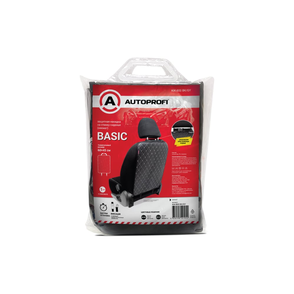 Накидка AUTOPROFI Кикмат BASIC лицевая сторона полиуретан + 3 мм поролон с вышивкой, задняя часть полиэстер, размер 60x45 см, 1 шт. чёрн./серый KIK-800 BK/GY