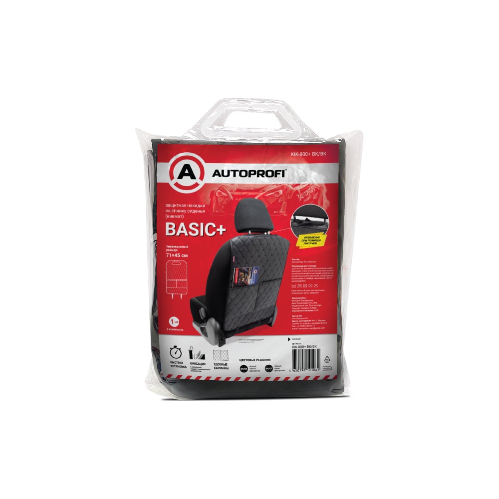 Накидка AUTOPROFI Кикмат BASIC+ лицевая сторона полиуретан + 3 мм поролон с вышивкой, задняя часть полиэстер, размер 71,5x45 см., 1 шт. чёрный KIK-800+ BK/BK