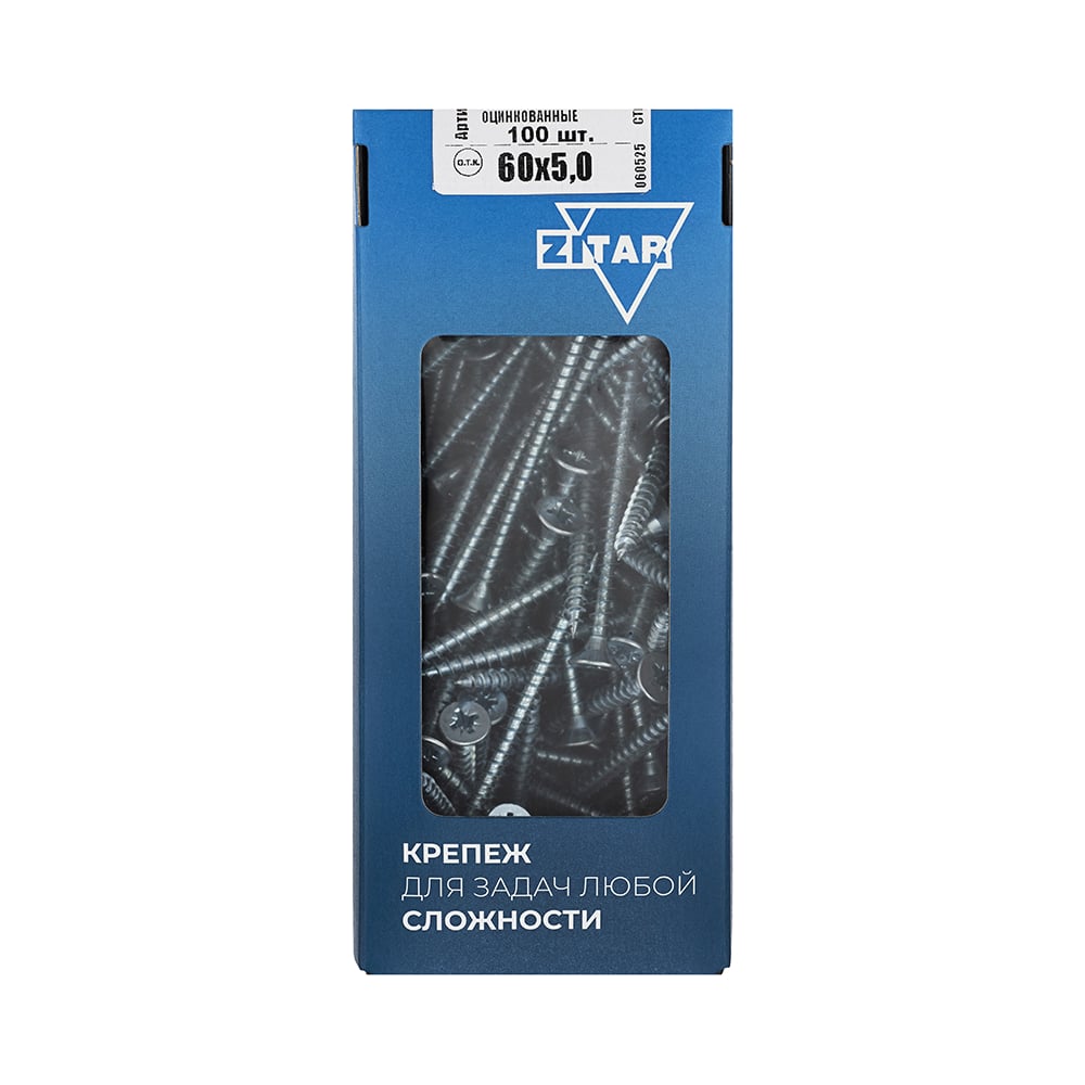 Универсальный саморез Zitar 60х5,0 мм 100 шт оцинкованный, коробка с окном 102201