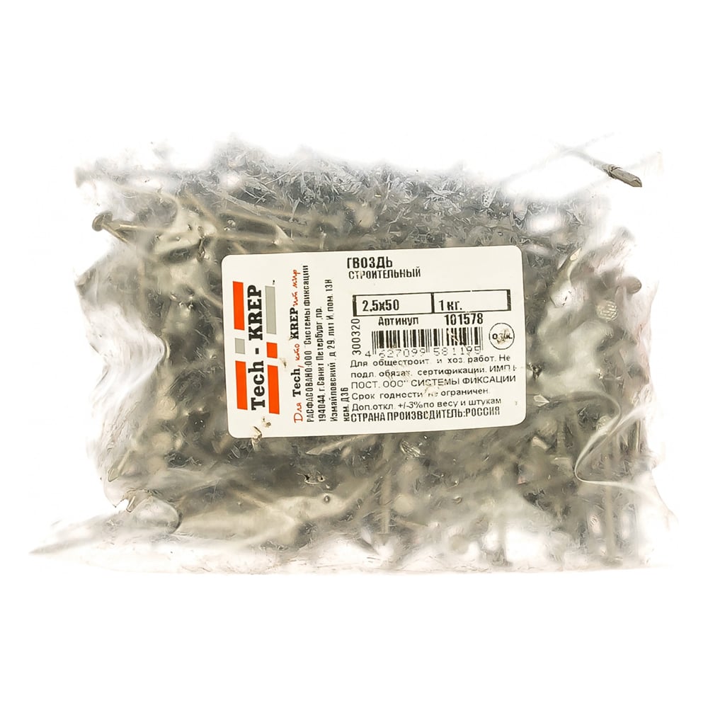 Строительный гвоздь 2.5х50, 1кг (535 шт.) - пакет Tech-Krep 101578
