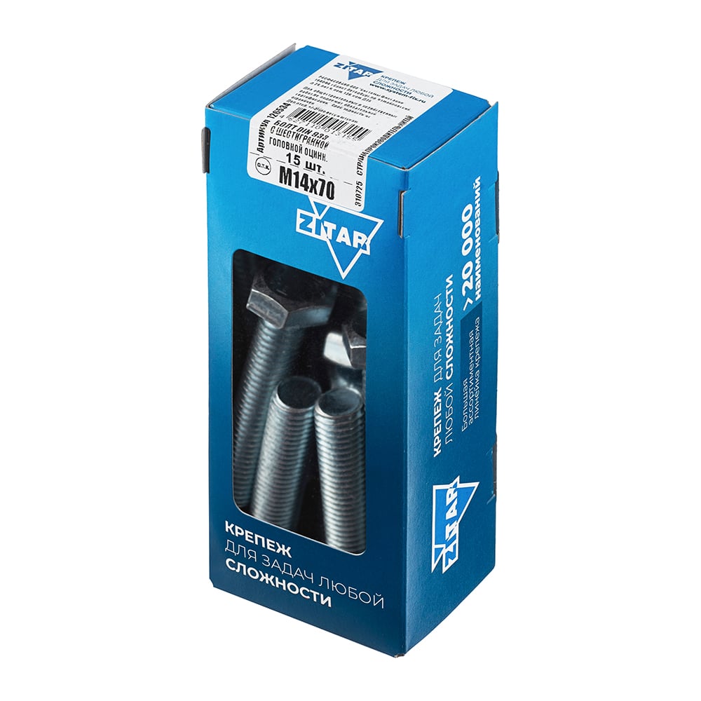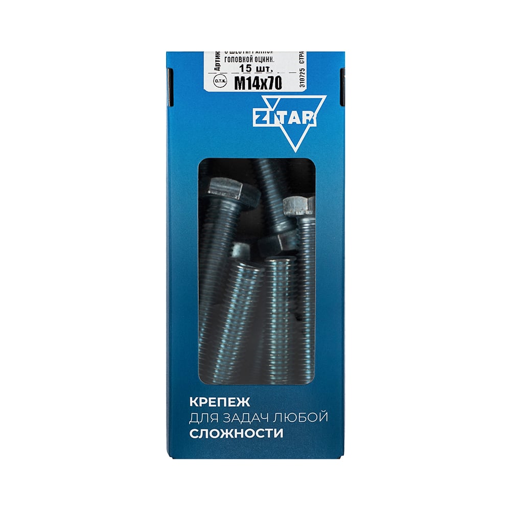 Болт с шестигранной головкой DIN933 оцинкованный, М14x70 мм, 15 шт в коробке с окном Zitar 126534