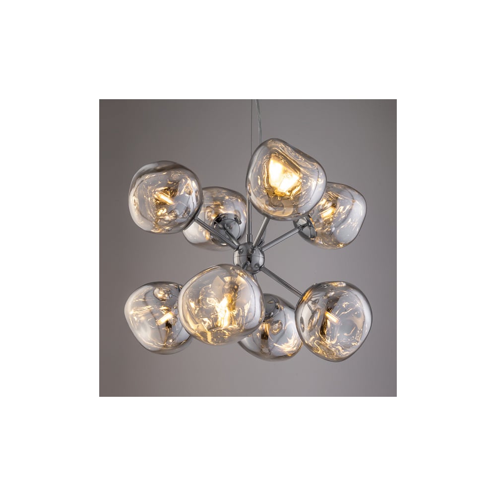 Тип подвесные Лампа в комплекте нет Вес нетто 4.63 кг Мощность светильника 320 Вт Цоколь G9 Тип лампы галогенная/светодиодная Защита от пыли и влаги IP20 Стиль модерн Материал плафона стекло Коллекция Ejection Цвет плафона хром Тип крепления планка Цветопередача не применимо Ra Количество ламп 8 Высота 122 см Мощность лампочки 40 Вт Напряжение питания 220В Регулировка яркости нет Материал арматуры металл Цвет арматуры хром Трансформатор в комплекте нет Провод без провода Основной цвет хром Диаметр 46 см Тип плафонов тонированный Особенности декоративный Поверхность арматуры глянцевая Поверхность плафонов глянцевая С изменяемой цветовой температурой нет Направление плафонов в стороны LED-подсветка нет