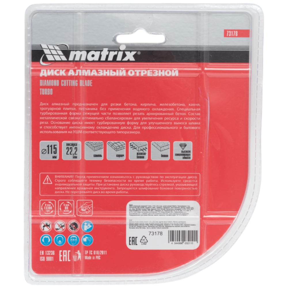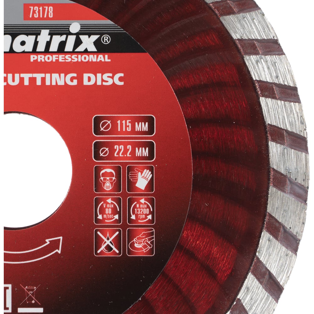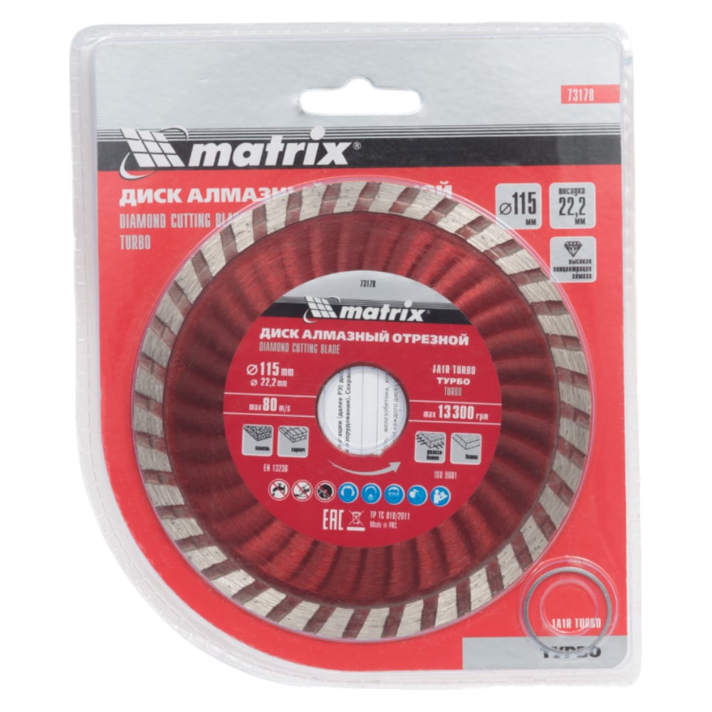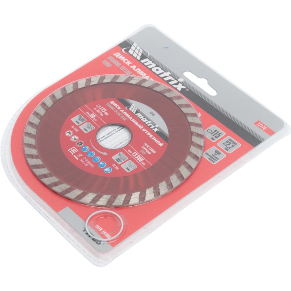 Диск алмазный отрезной Turbo (115х22.2 мм) для УШМ Matrix 73178