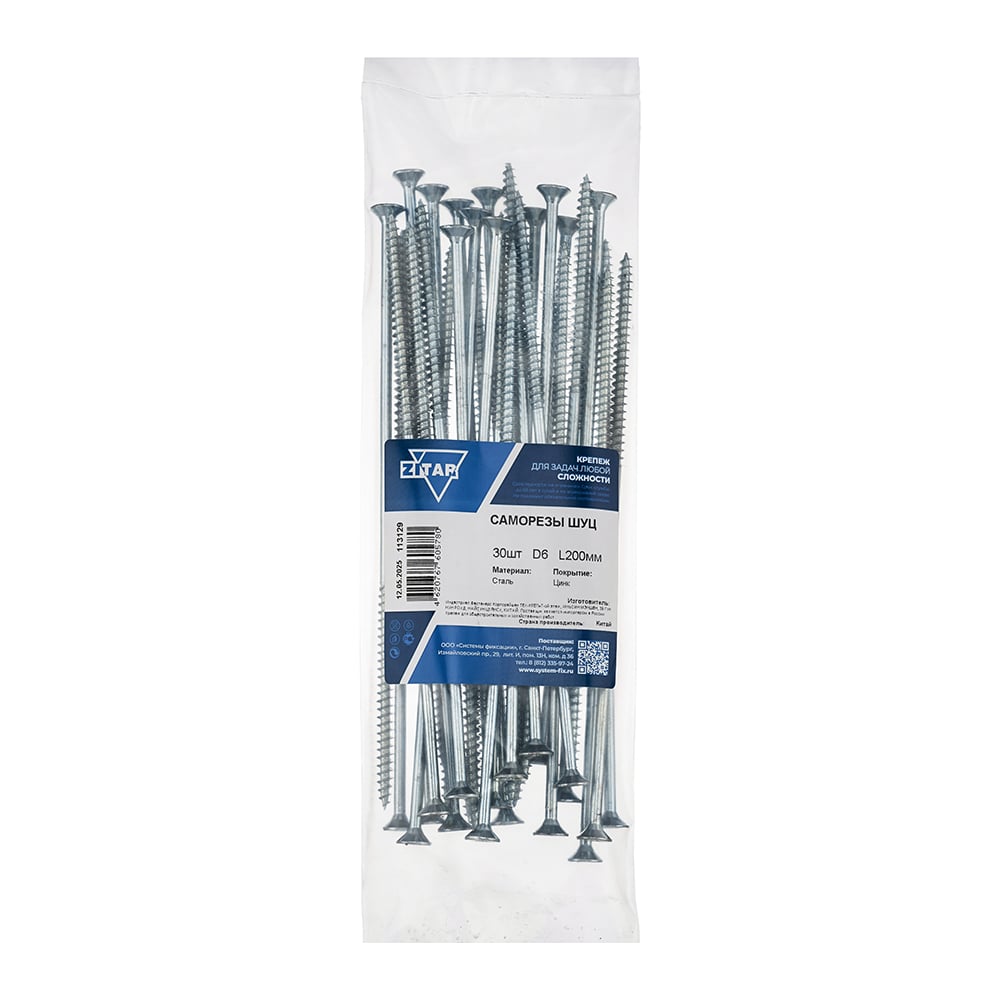 Саморез ШУц с потайной головкой 6,0x200 мм, 30 шт., пакет Zitar 113129
