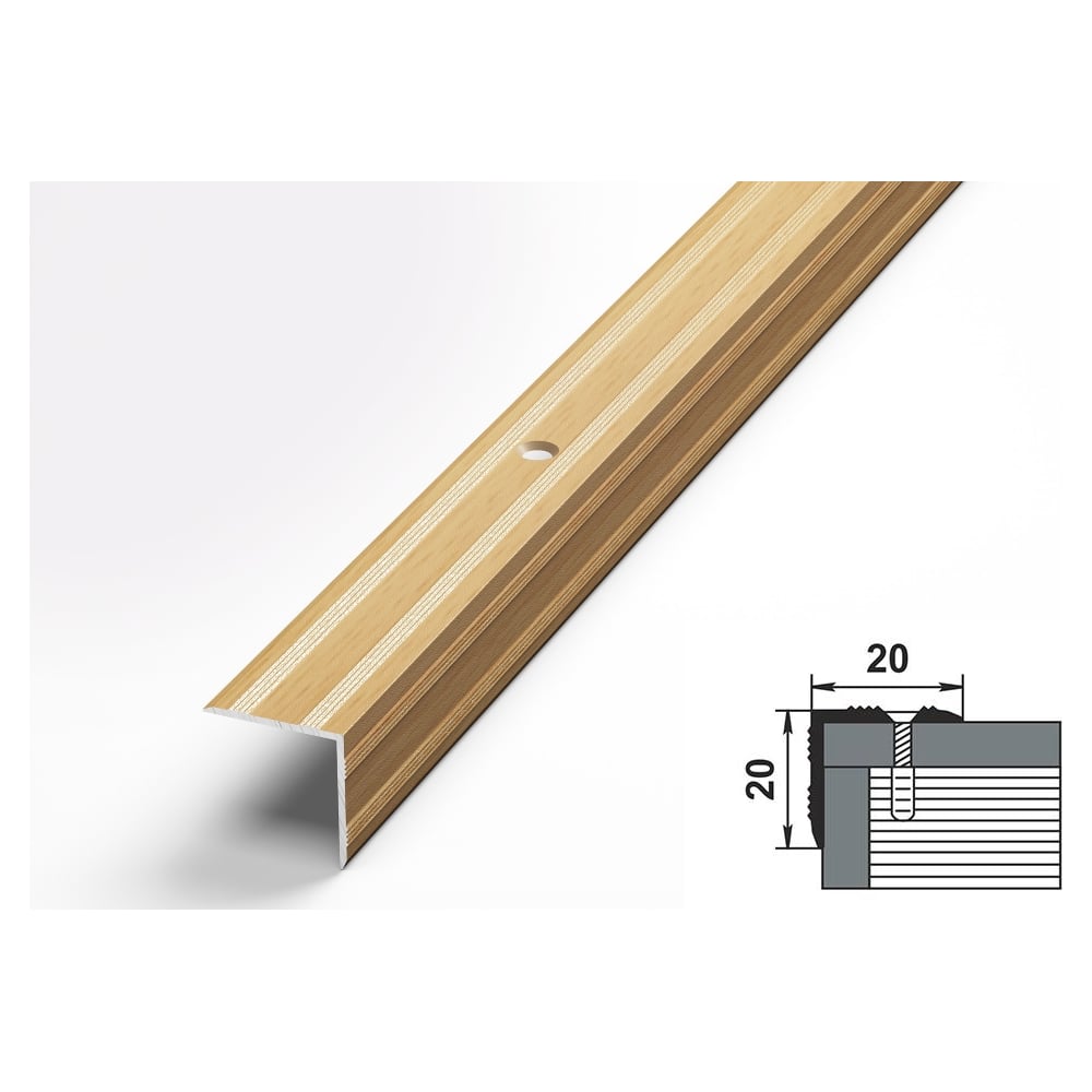 Порог угловой алюминиевый (20х20 мм; 0.9 м; декоративный; бук натуральный) Лука 00000002048