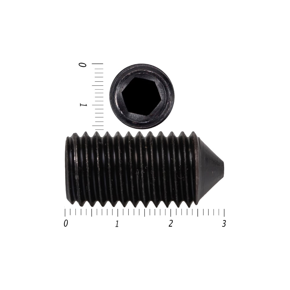 Установочный винт с внутренним шестигранником КРЕП-КОМП черный, DIN 914, 16x30, пр. 10.9, конический конец, 20 шт. вук1630
