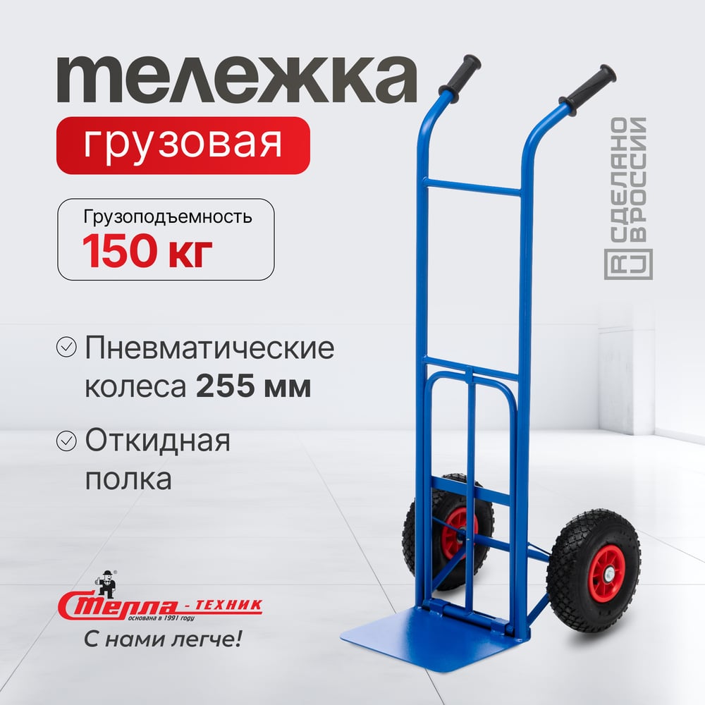 Грузовая тележка с откидной полкой СТЕЛЛА-ТЕХНИК грузоподъемность 150 кг КГ-150-пневмо-255