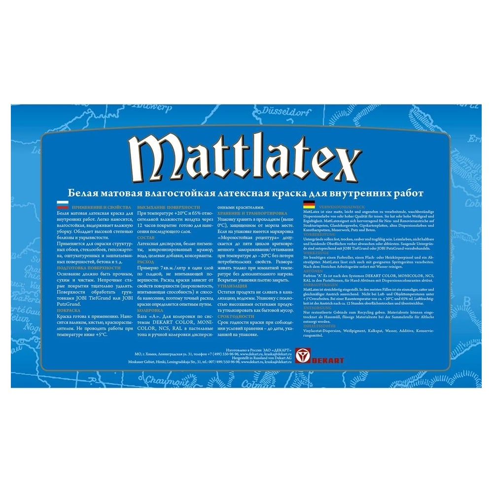 | Система колеровки | Колеруется по системе Dekart Color — каталогам SPIRIT, MONICOLOR, NCS, RAL. |