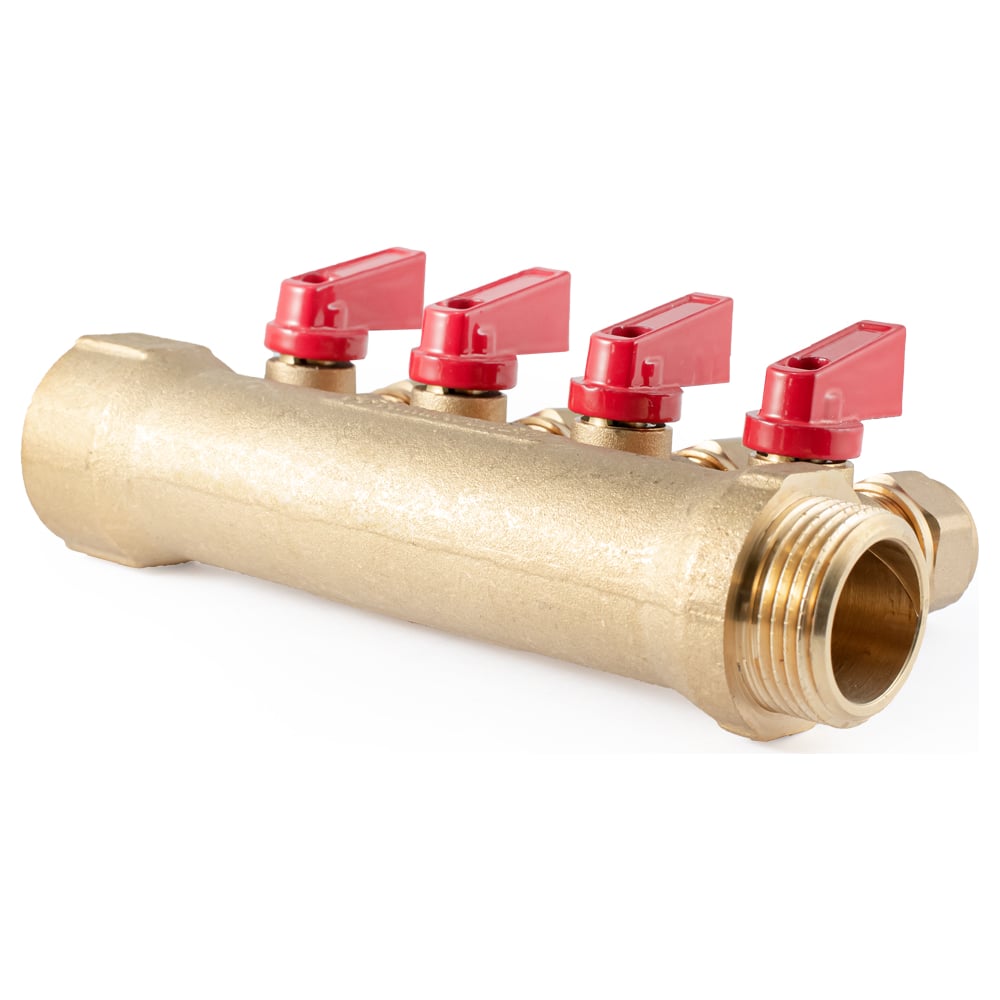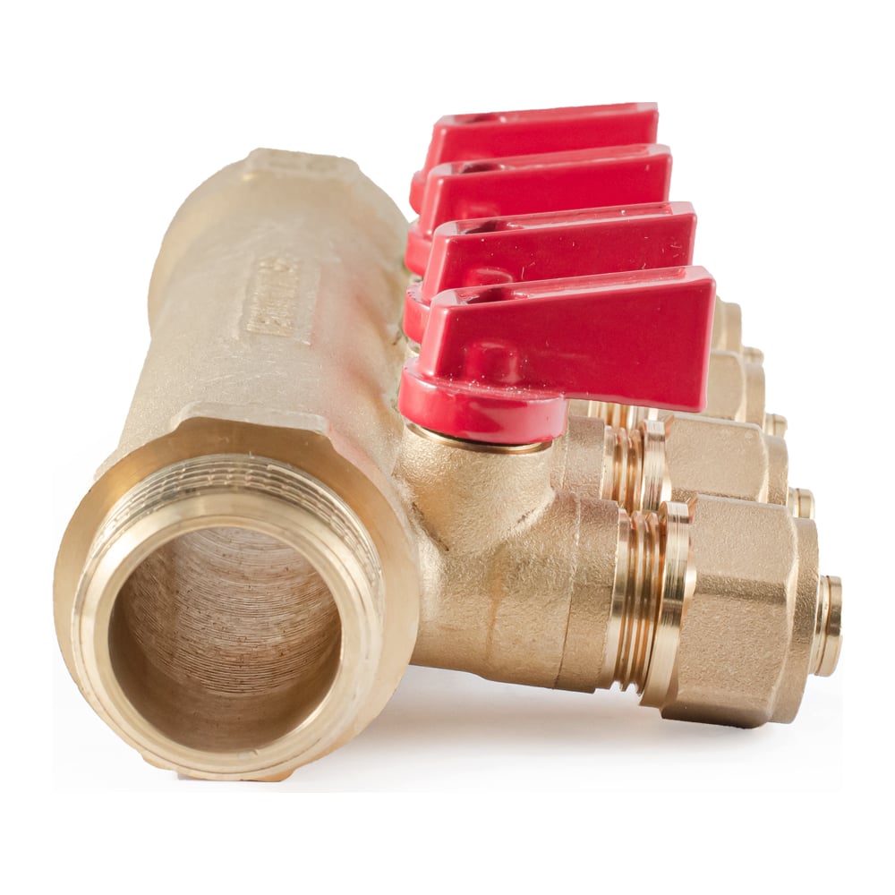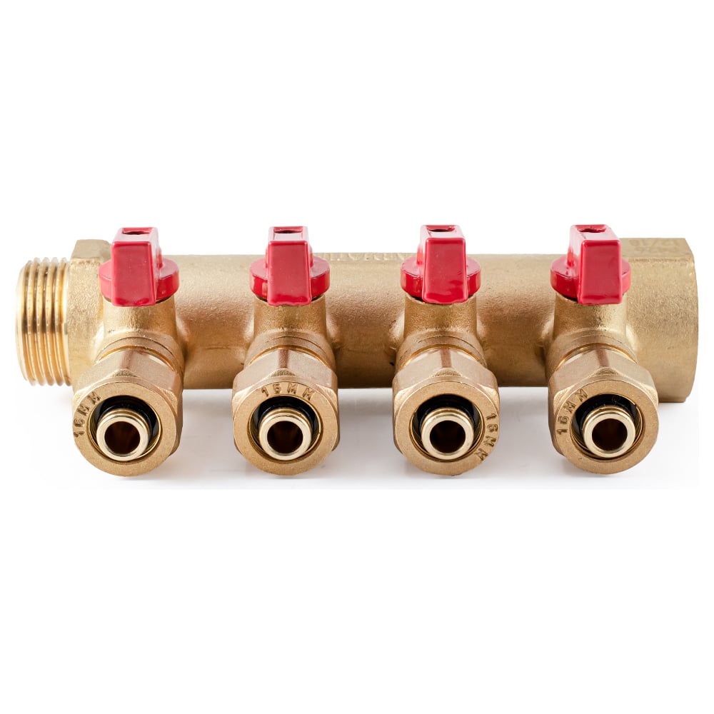 Коллектор с шаровыми кранами PROFACTOR в/н 1" х 4 вых 16 цанга PF MVP 267.4