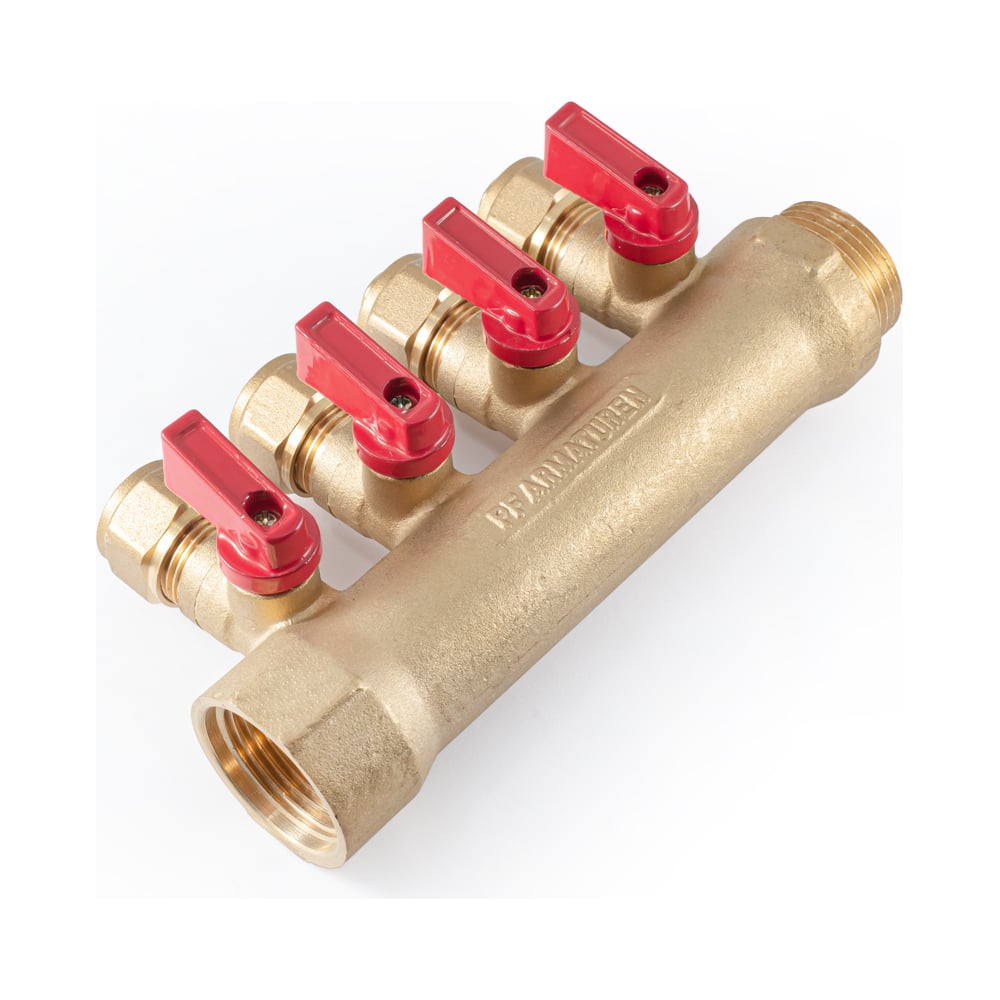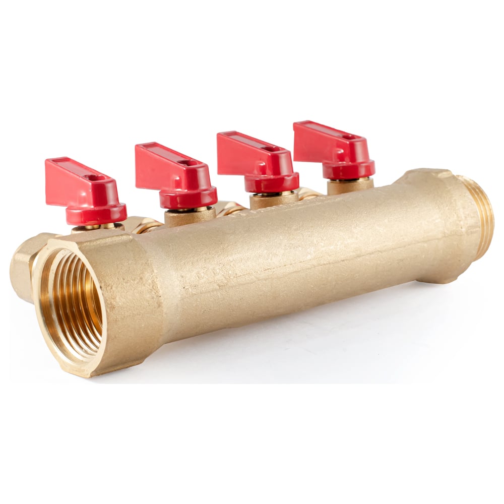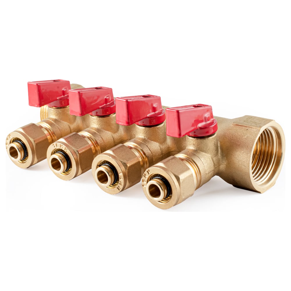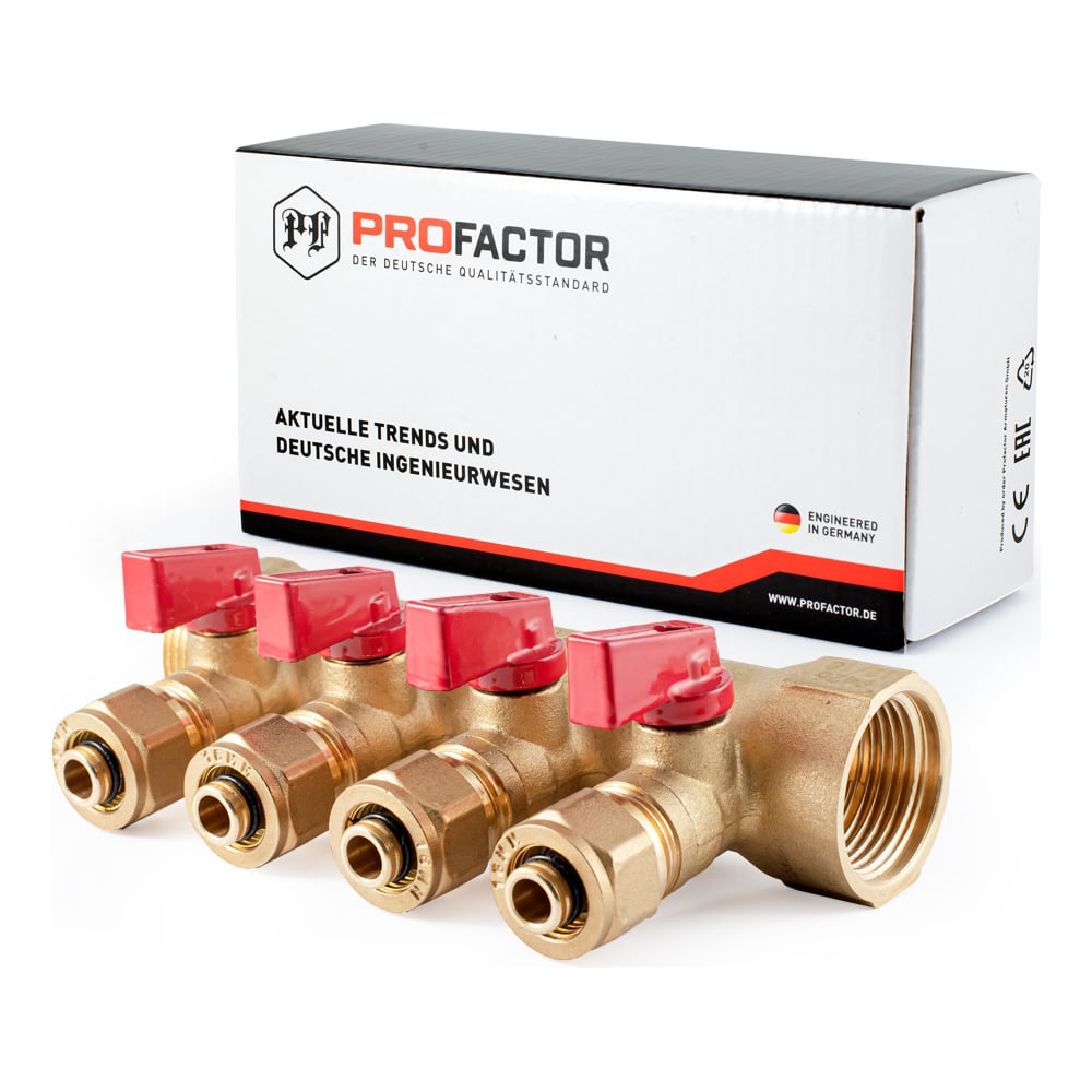 Коллектор с шаровыми кранами PROFACTOR в/н 1" х 4 вых 16 цанга PF MVP 267.4