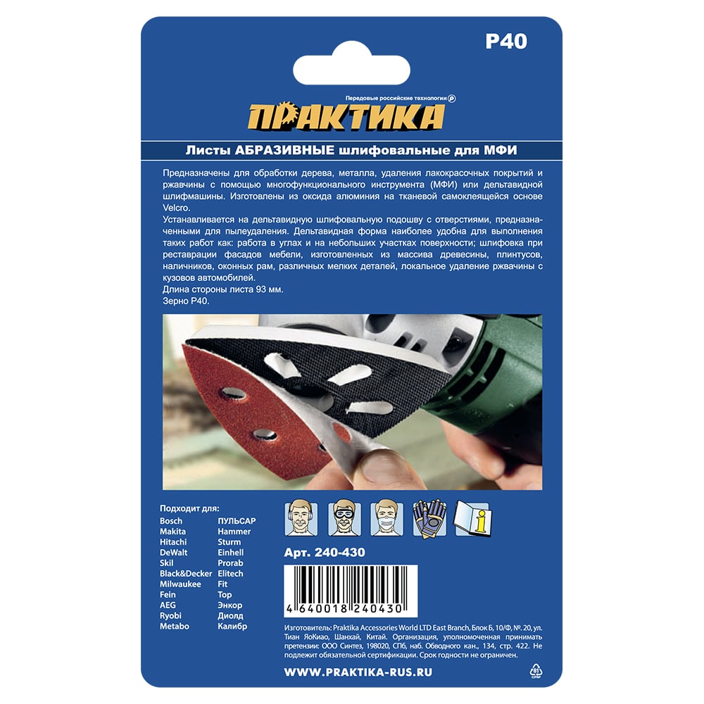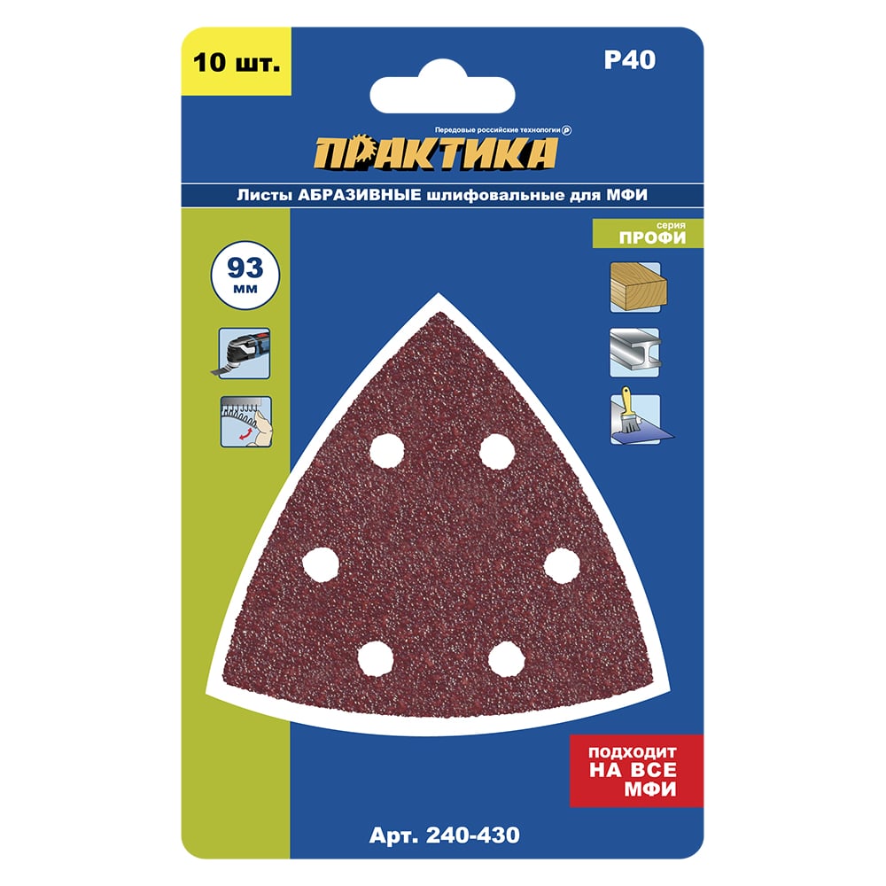 Набор шлифовальных листов дельтавидных (93 мм; Р40) 10 шт. ПРАКТИКА 240-430