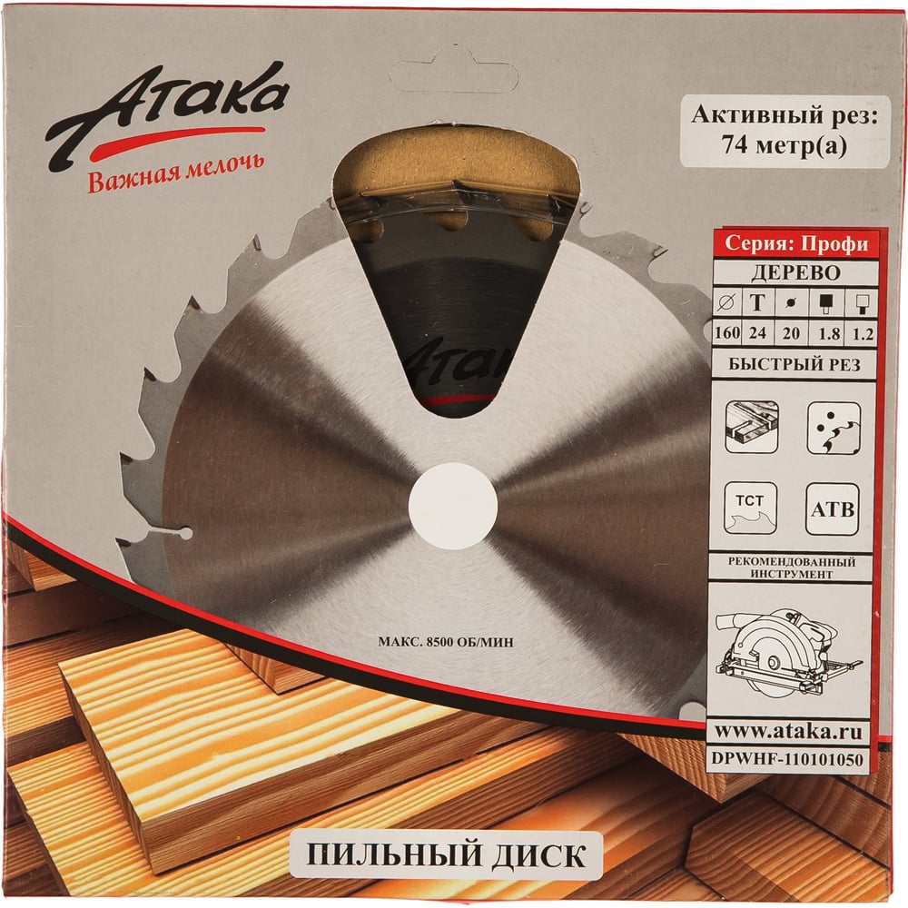 Диск пильный (160 мм; 24T; 20 мм) по дереву профи АТАКА 8078480