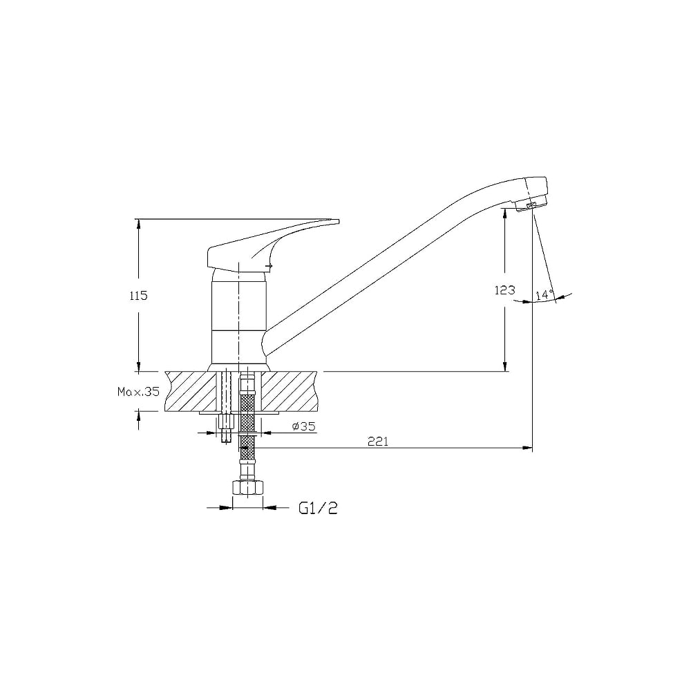 | Длина излива | 221 мм |