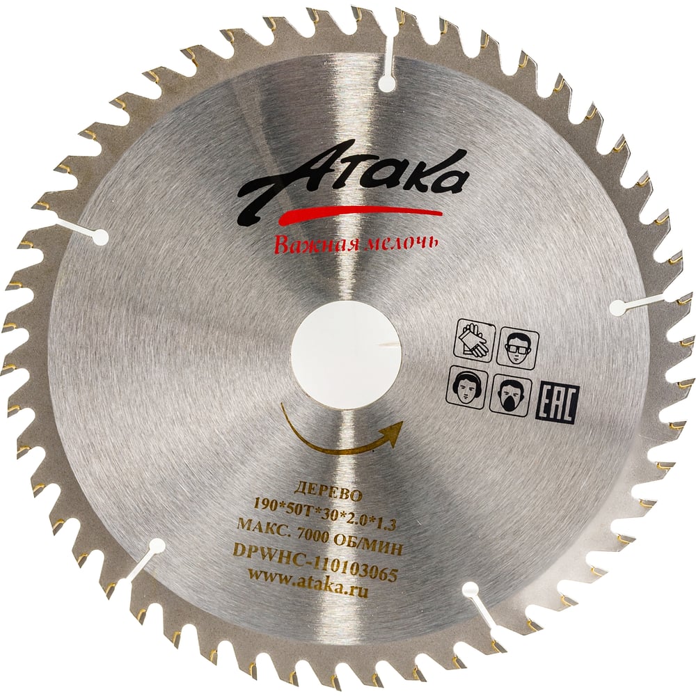 Диск пильный (190 мм; 50T; 30 мм) по дереву профи АТАКА 8079080