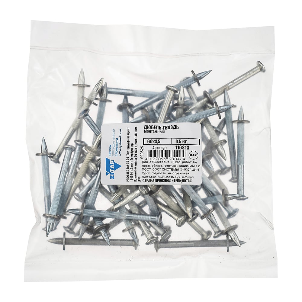 Монтажный дюбель-гвоздь, 4,5x60 мм, 0,5 кг в пакете Zitar 116813