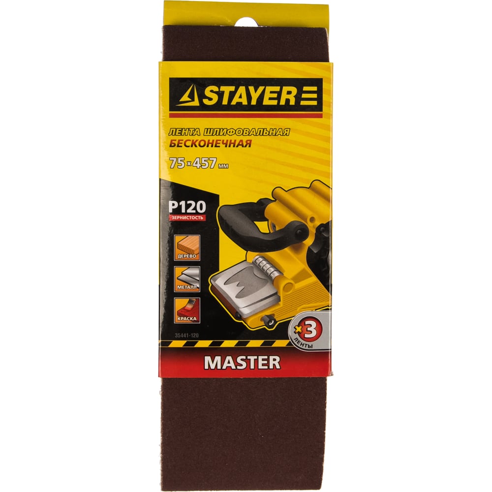 Лента шлифовальная универсальная 3 шт. для ЛШМ (75х457 мм; Р120) STAYER 35441-120