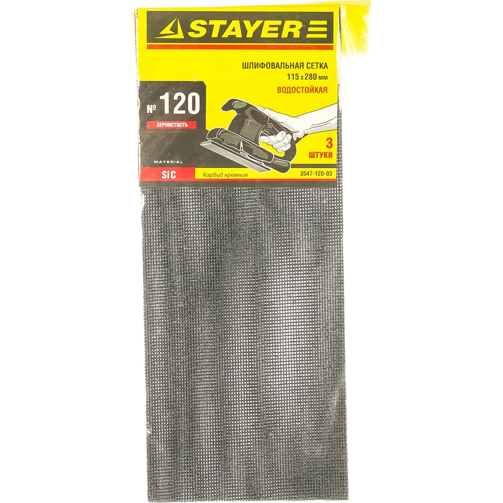 Сетка шлифовальная водостойкая 3 шт. (115х280 мм; Р120) STAYER 3547-120-03