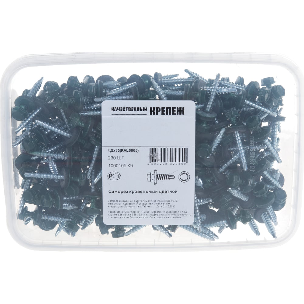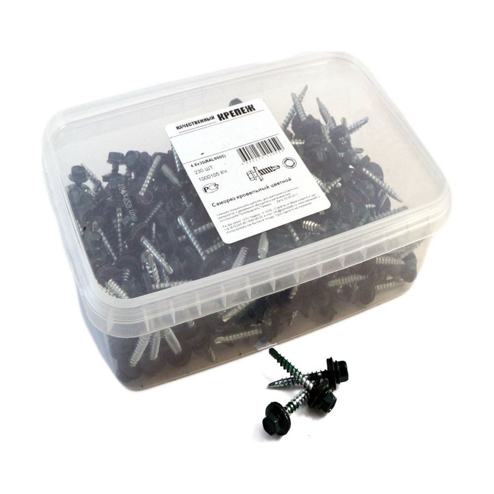 Кровельный саморез Качественный крепеж зеленый мох 4,8х35 230 шт 1000105 КЧ