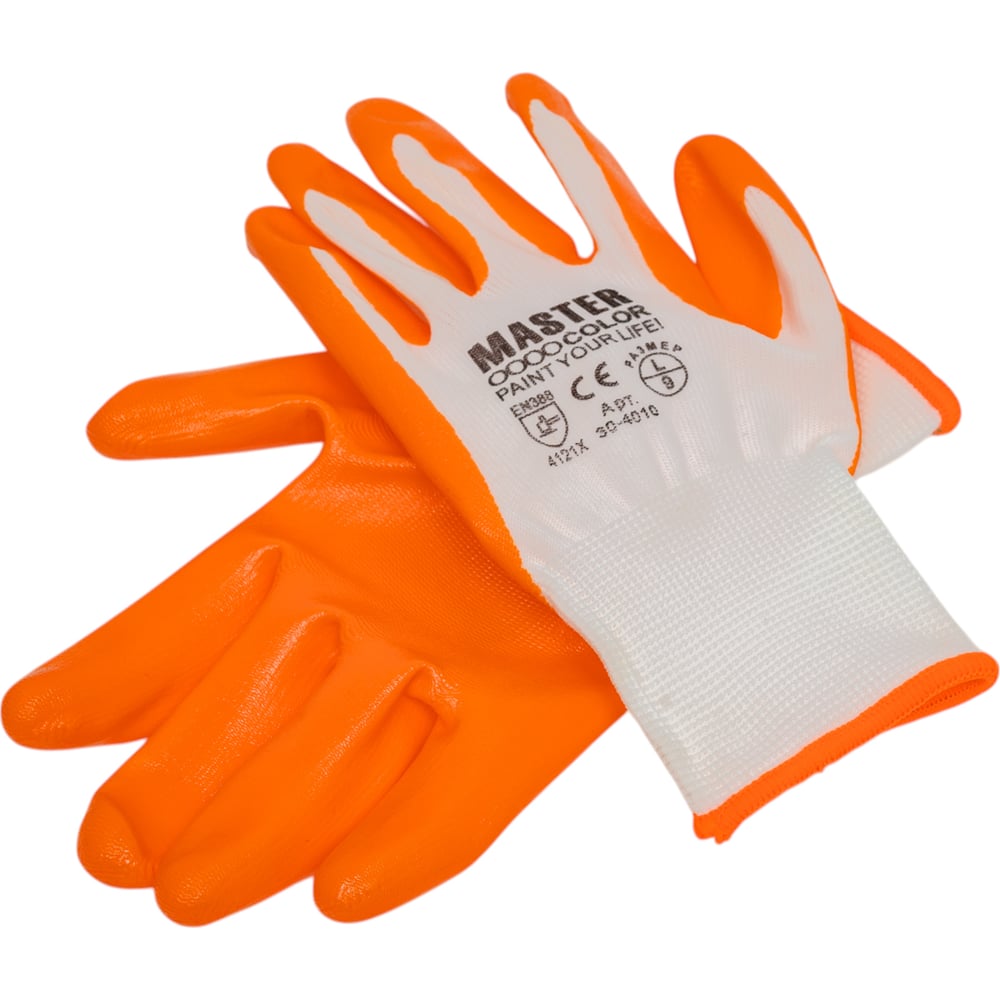 Водоотталкивающие перчатки MASTER COLOR с обливкой из нитрила, белые 30-4010