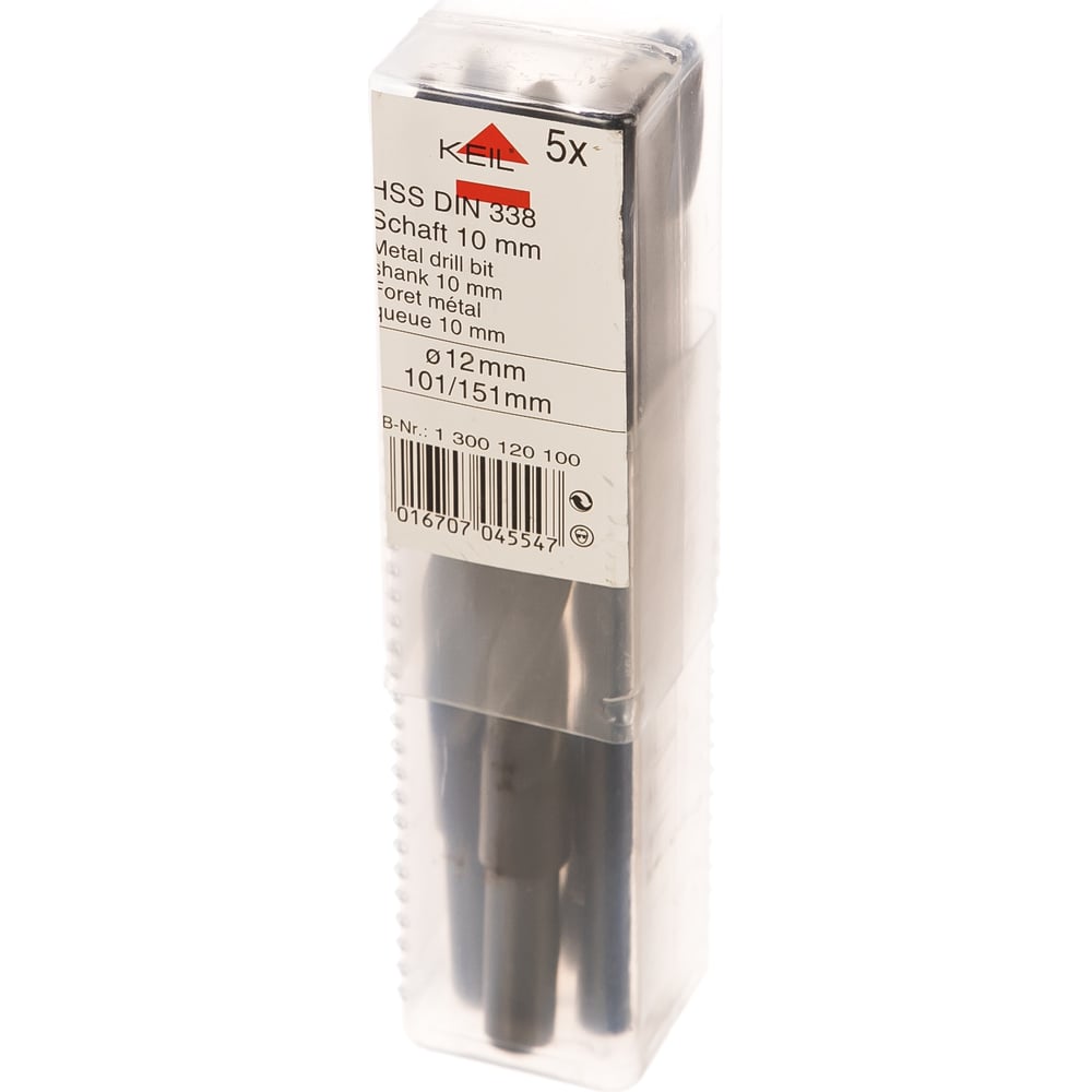 Сверла 5 шт. HSS DIN 338 проточенный хвостовик 10 мм, 12,0х151х101 мм KEIL 300120100