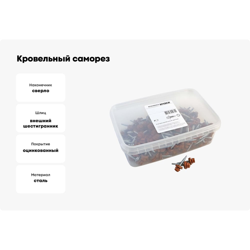 Кровельный саморез Качественный КРЕПЕЖ коричневая медь RAL 8004, 4.8х35 мм, 200 шт 1000243 КЧ