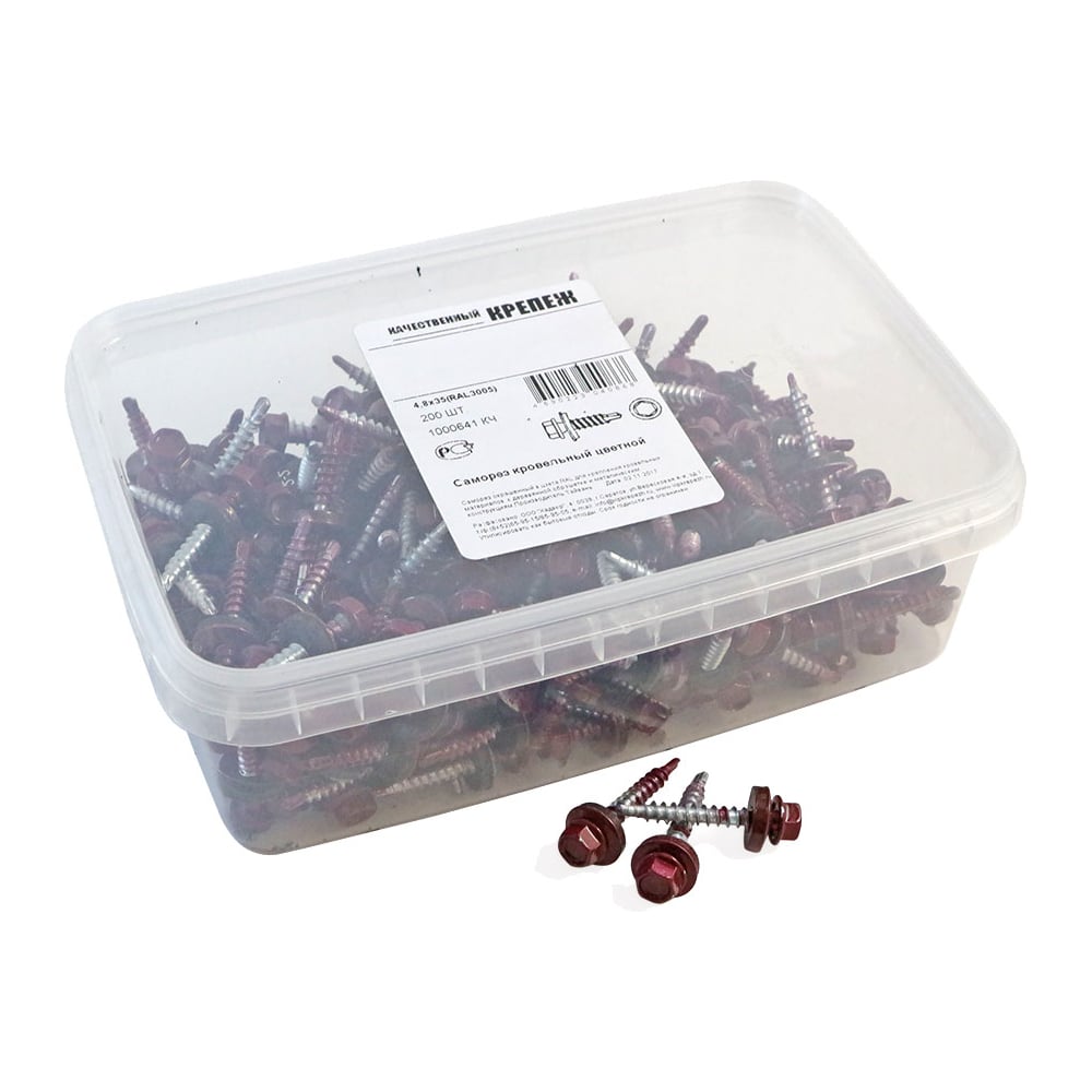 Кровельный саморез качественный крепеж 4,8/35 RAL3005200 красное вино (200 шт.) 1000641