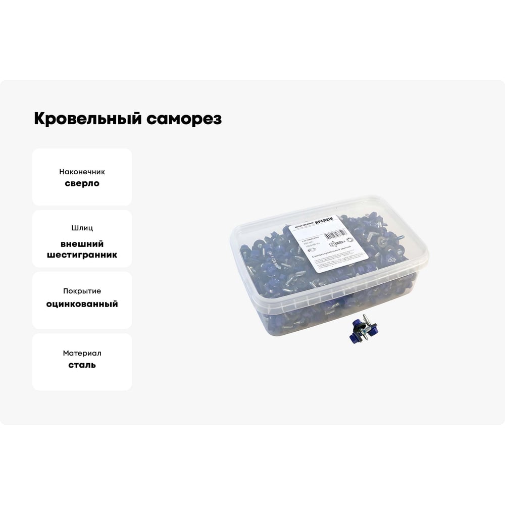 Кровельный саморез Качественный КРЕПЕЖ синий RAL 5005, 5.5х19 мм, 350 шт 1000156 КЧ