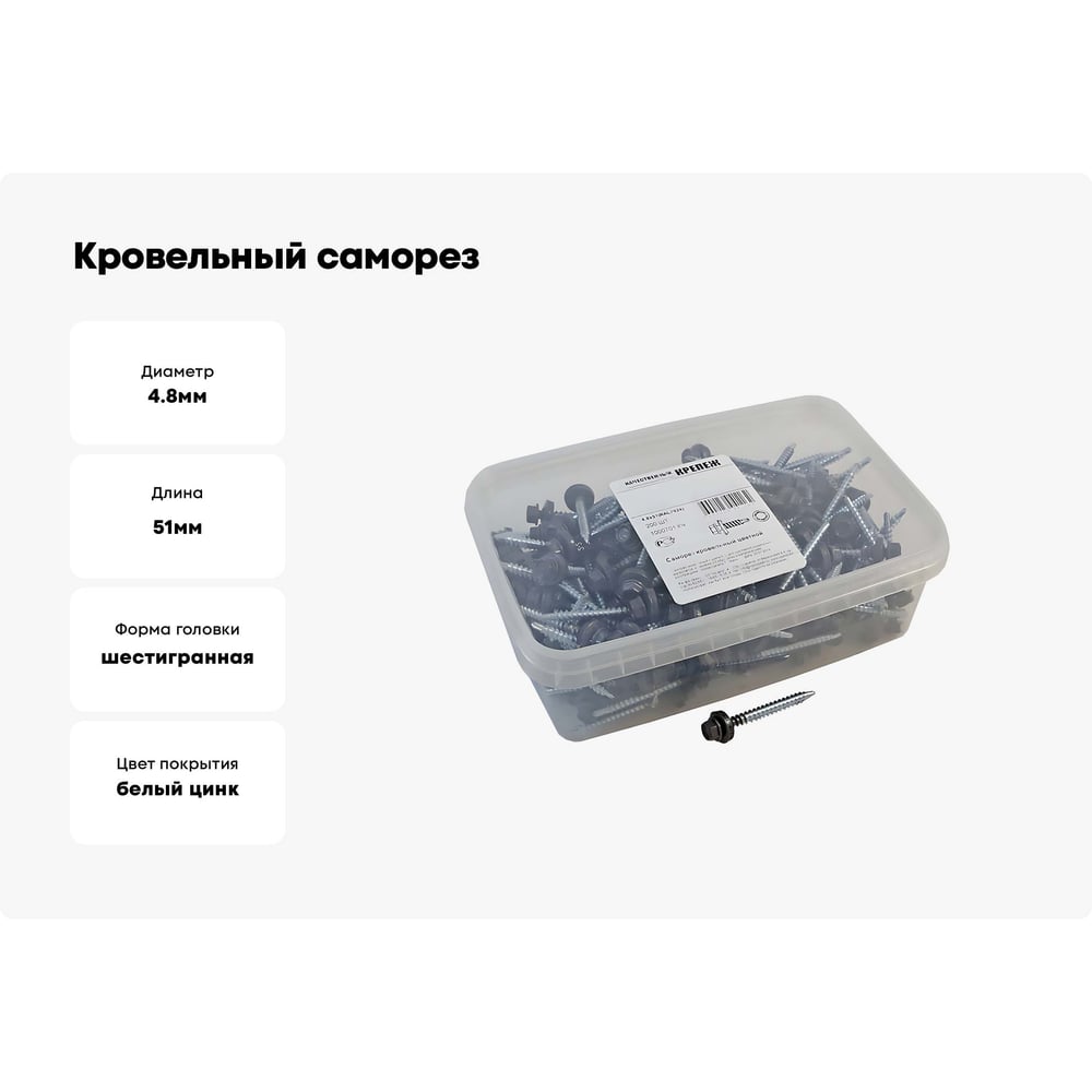 Кровельный саморез качественный крепеж 4,8/51 RAL7024200 серый графит (200 шт.) 1000701