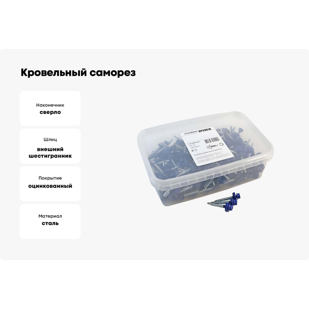 Кровельный саморез Качественный КРЕПЕЖ синий RAL 5005, 4.8х35 R мм, 200 шт 1000709 КЧ