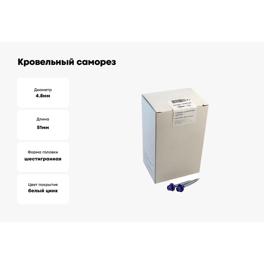 Кровельный саморез крепежная техника 4,8/51 RAL5002 ультрамарин (150 шт.) 420414