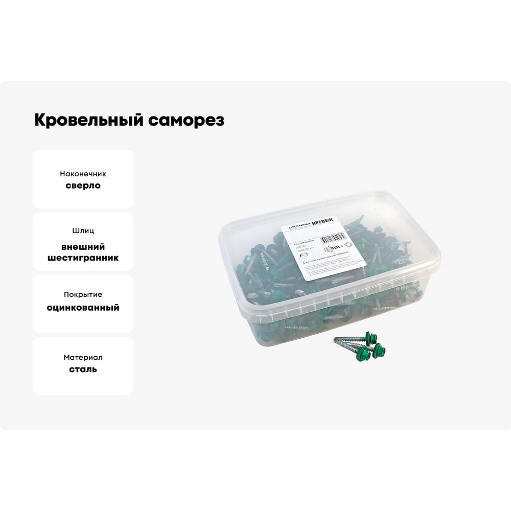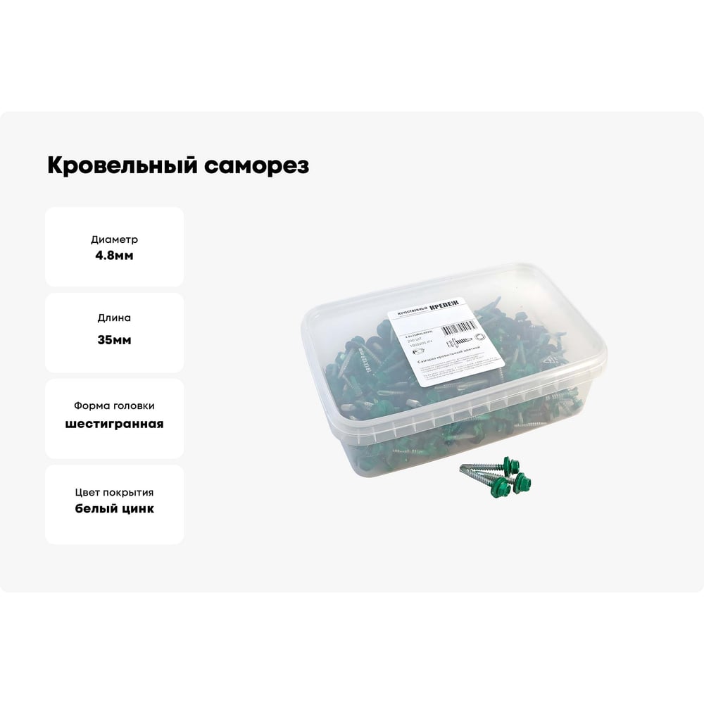 Кровельный саморез Качественный КРЕПЕЖ зеленая мята RAL 6029, 4.8х35 мм, 200 шт 1000205 КЧ