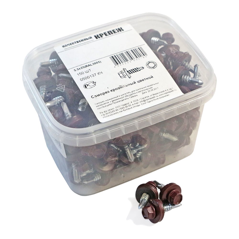 Кровельный саморез Качественный КРЕПЕЖ красное вино RAL 3005, 5.5х25 мм, 150 шт 0500137 КЧ
