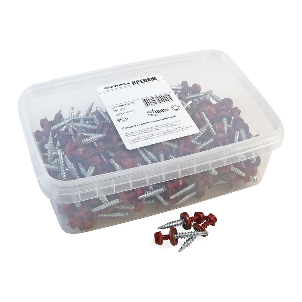 Кровельный саморез качественный крепеж 4,8/35 RAL3011200 красно-коричневый (200 шт.) 1000649