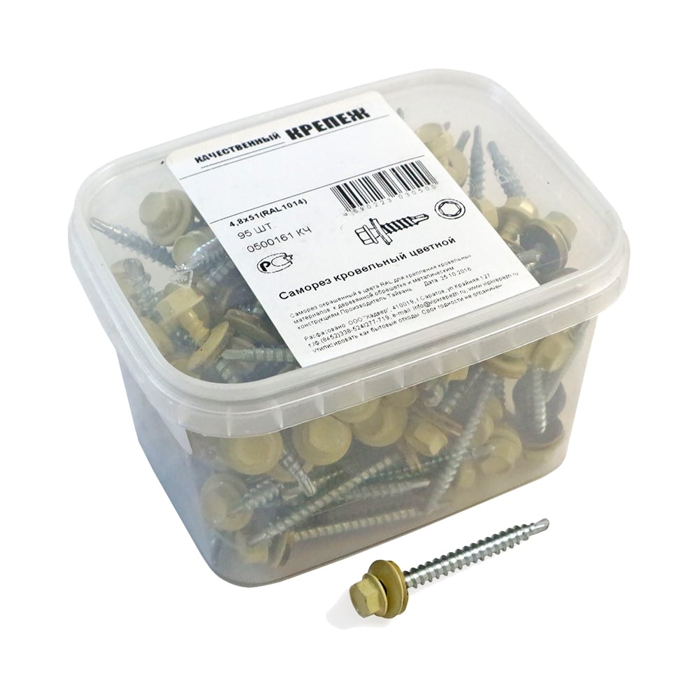 Кровельный саморез Качественный КРЕПЕЖ слоновая кость RAL 1014, 4.8х51 мм, 95 шт 0500161 КЧ