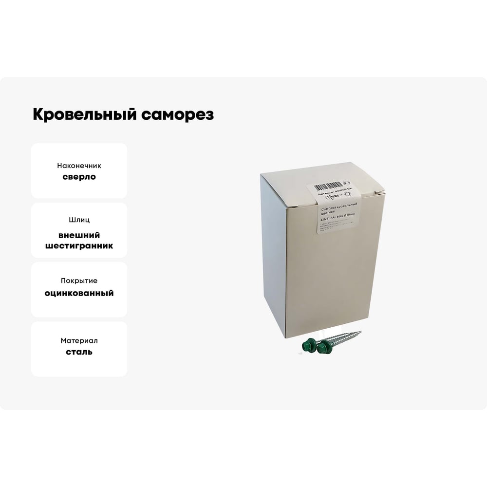 Кровельный саморез крепежная техника 4,8/51 RAL6002 зеленый лист (150 шт.) 420256