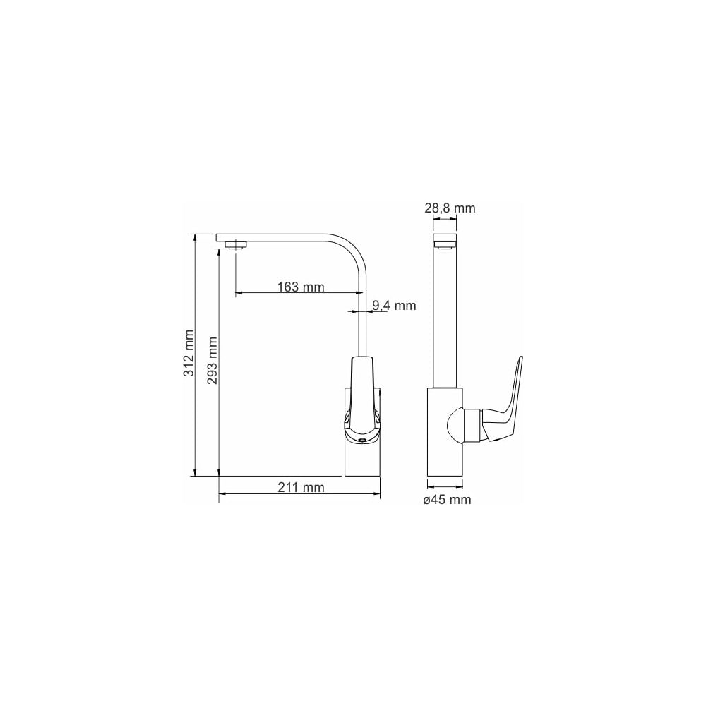| Высота смесителя | 312 мм |