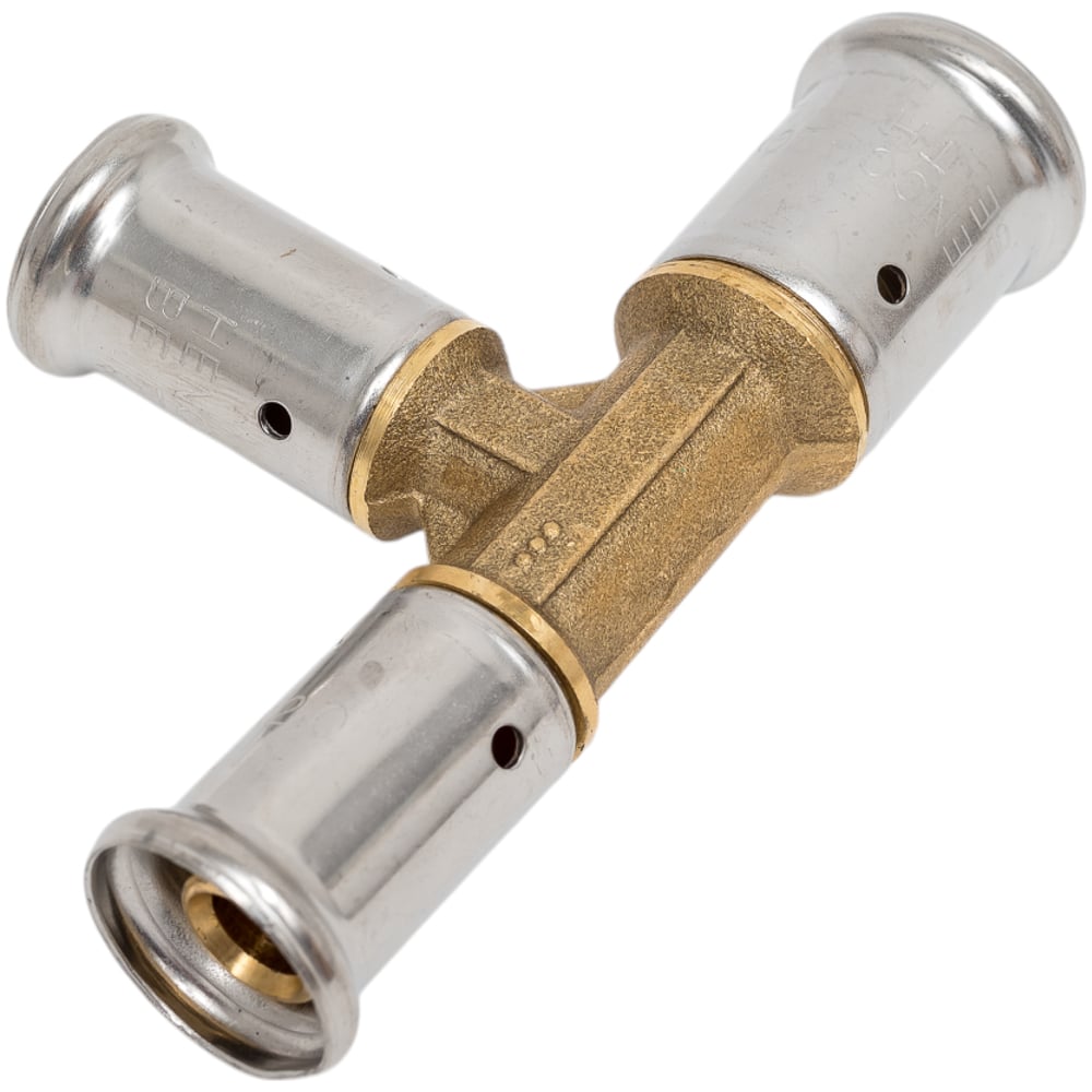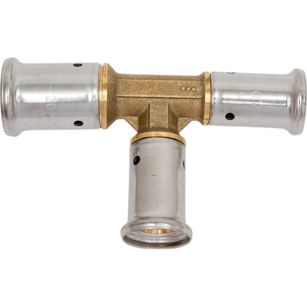 Переходный тройник HENCO уменьшенный с двух сторон, латунь, пресс, 20x16x16, 11P-201616