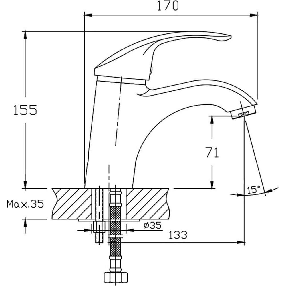 | Длина излива | 133 мм |