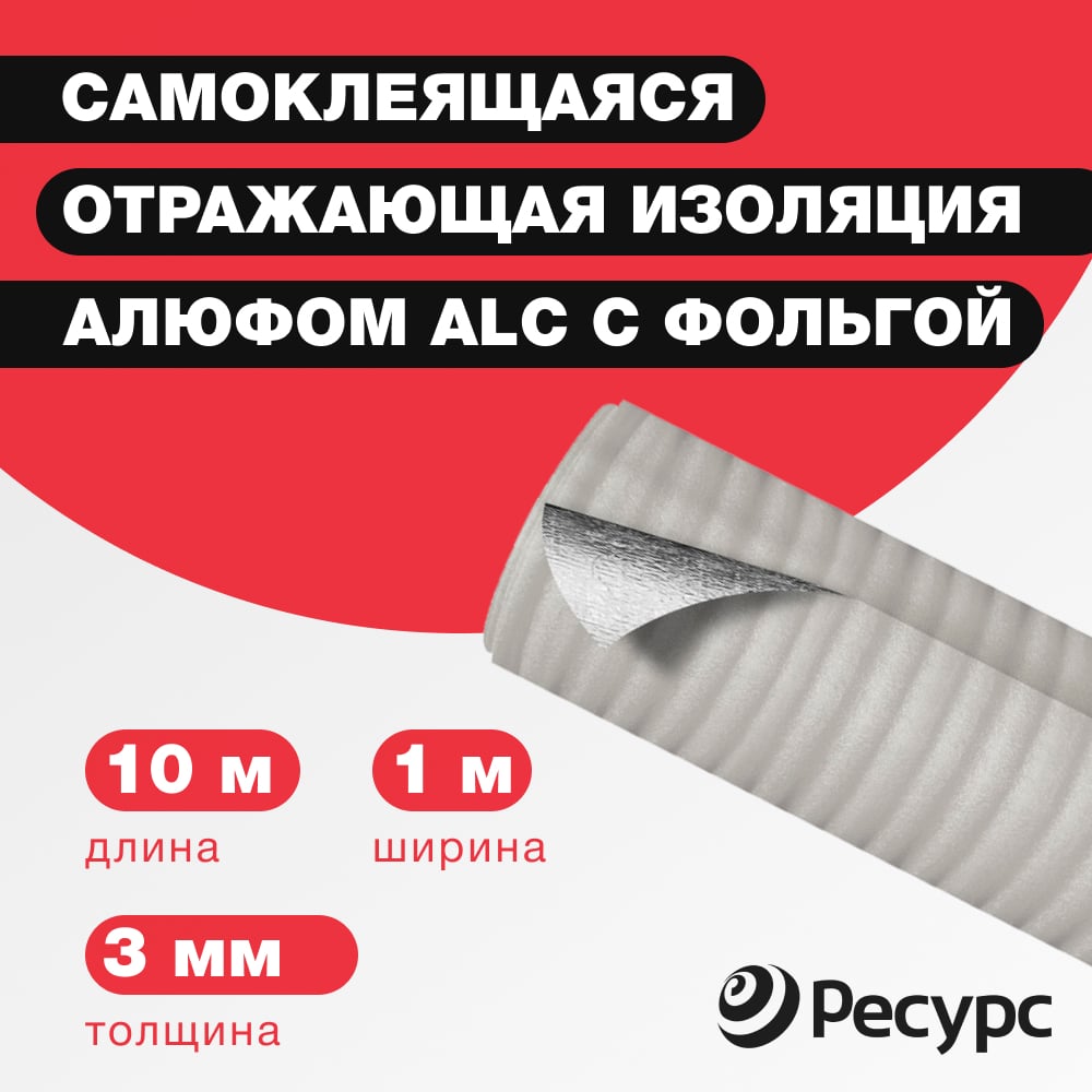 Самоклеящаяся тепло-шумоизоляция воздуховодов и систем кондиционир. Алюфом ALC 3мм 1,0 х 10м 16393