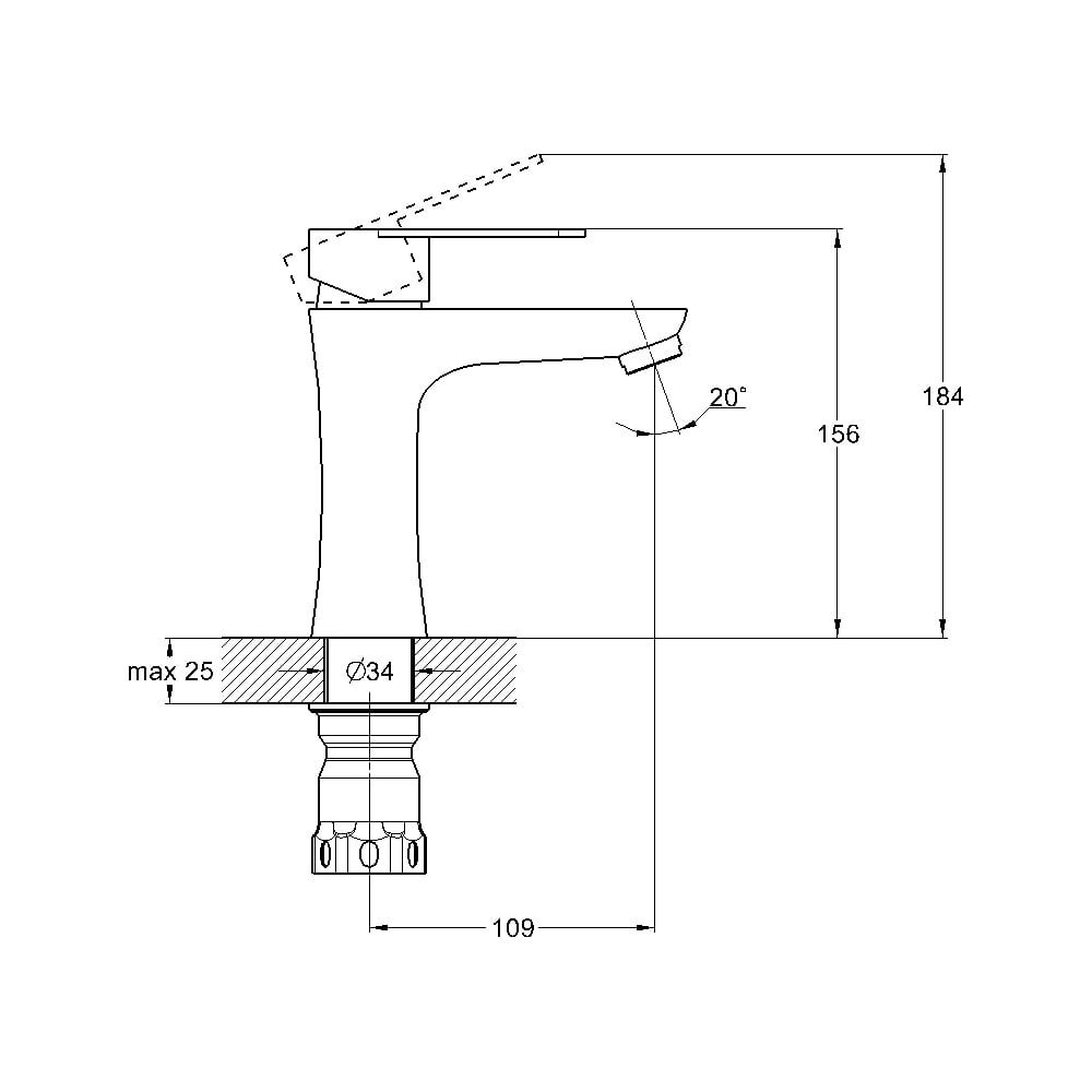 | Диаметр отверстия в раковине | 34 мм |
