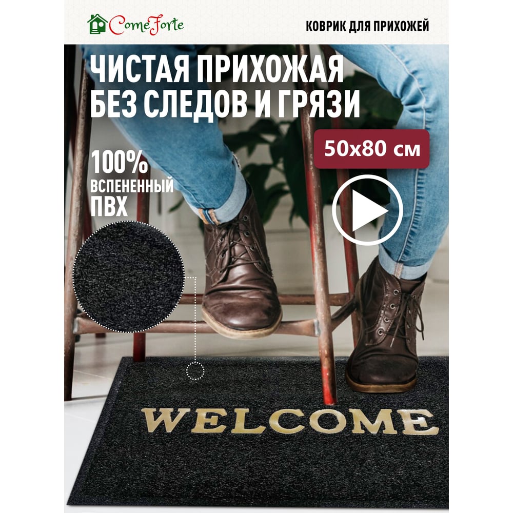 Придверный пористый коврик ComeForte Welcome 50х80 см черный WM-07