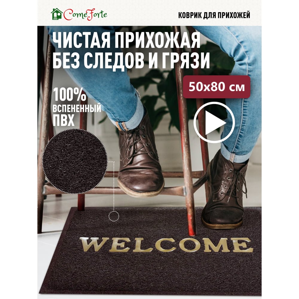 Придверный пористый коврик ComeForte Welcome 50х80 см коричневый WM-08