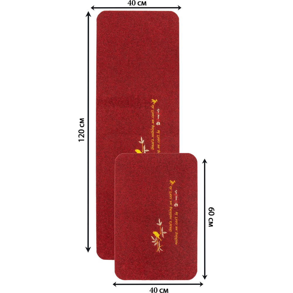 Коврик ComeForte на кухню набор ВЕЛЮР Bird 40х60, 40х120 см Бордовый КМ-012 KM-012M