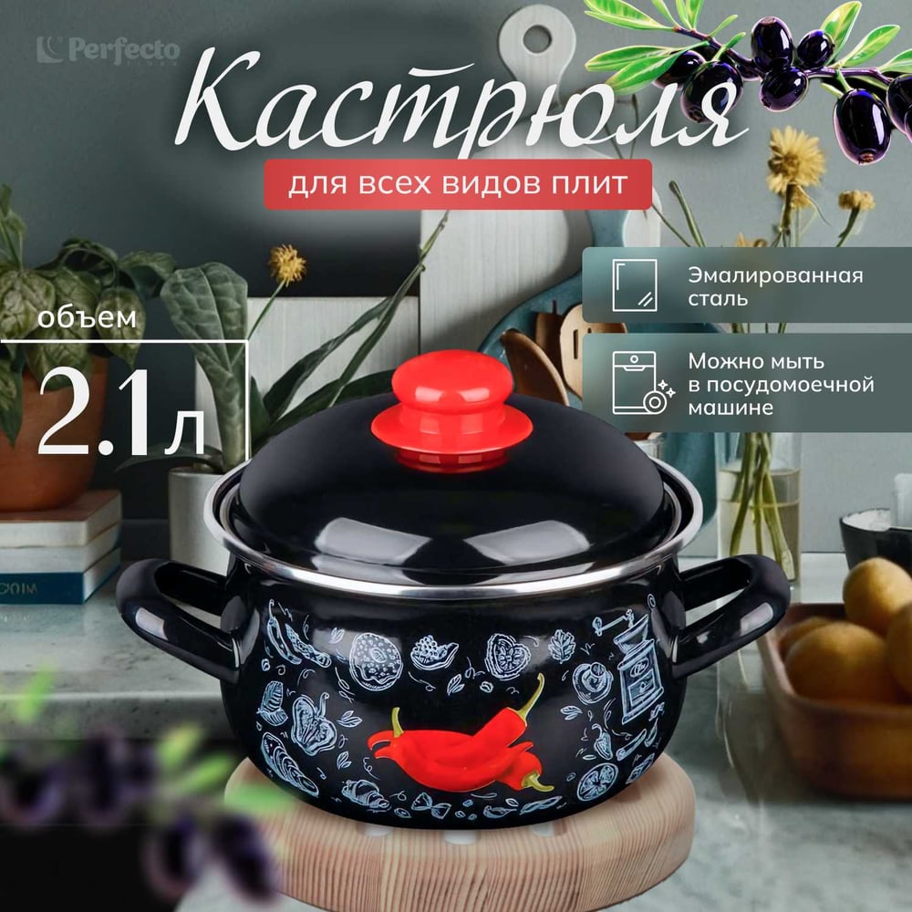 Эмалированная стальная кастрюля PERFECTO LINEA Перчик 2.1 л 50-367821