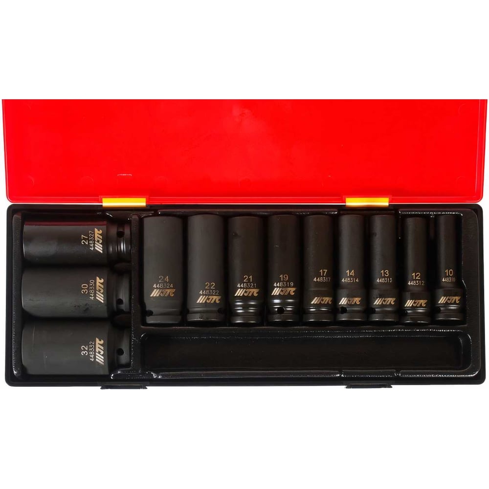 Набор ударных глубоких двенадцатигранных торцевых головок 1/2" 10-32мм в кейсе 12шт JTC-K4122
