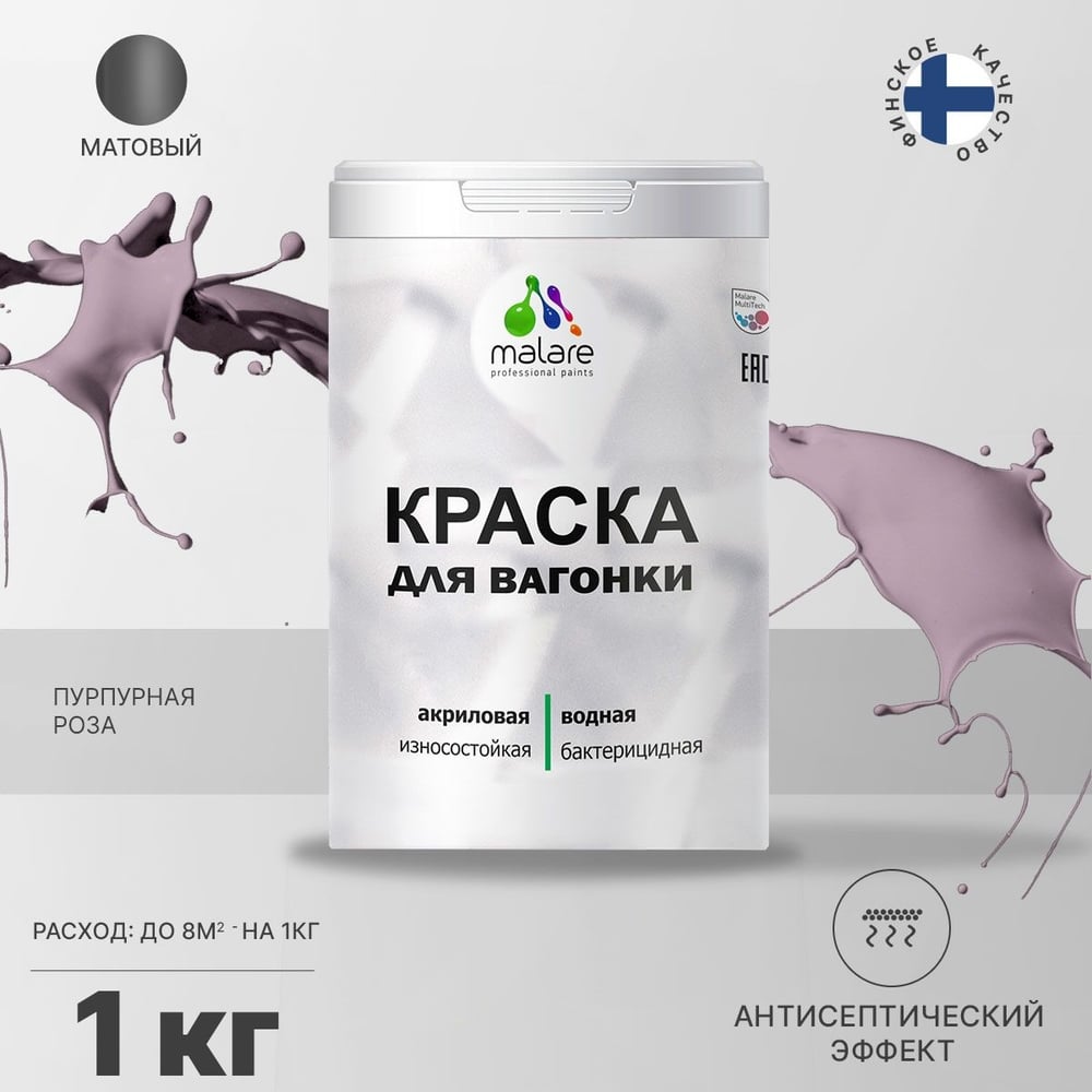 Краска MALARE для вагонки, с антисептическим эффектом, пурпурная роза, 1 кг КВГНКАПУРМ0100