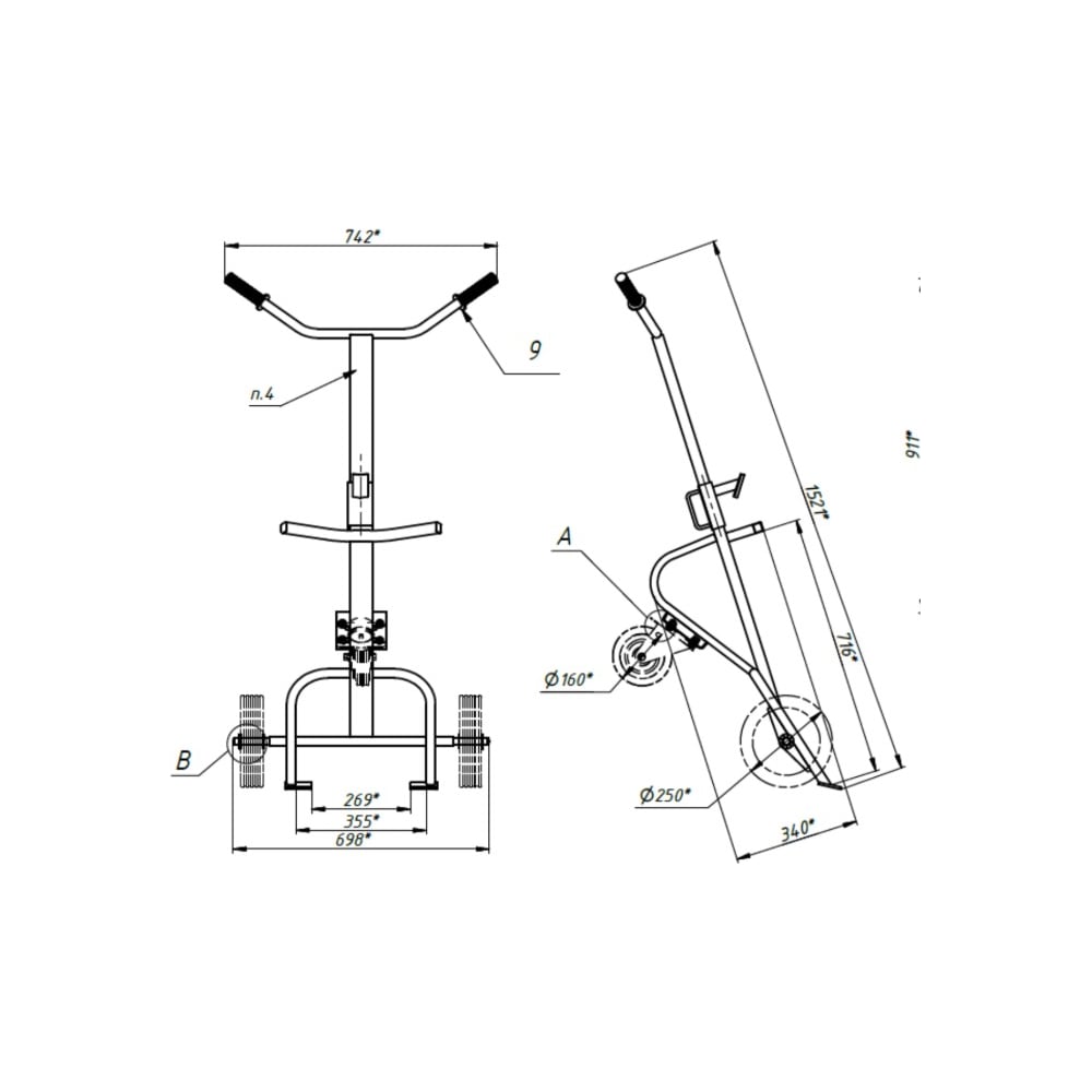 Тележка для бочек RUSKLAD КБ 1 с литыми колёсами d250мм. КБ 1 литые