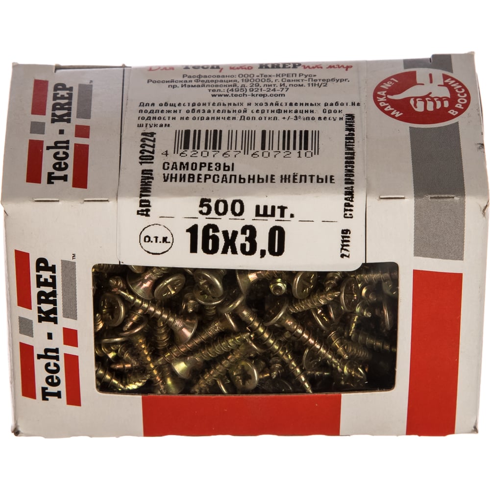 Универсальный саморез Tech-Krep 16х3,0 мм 500 шт желтый, коробка с окном 102224